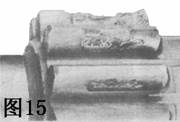 圖14中的麻點(diǎn)發(fā)生在齒根接觸處,沉重的接觸發(fā)生在麻點(diǎn)位置,因?yàn)槌d荷齒沒(méi)有正確嚙合。